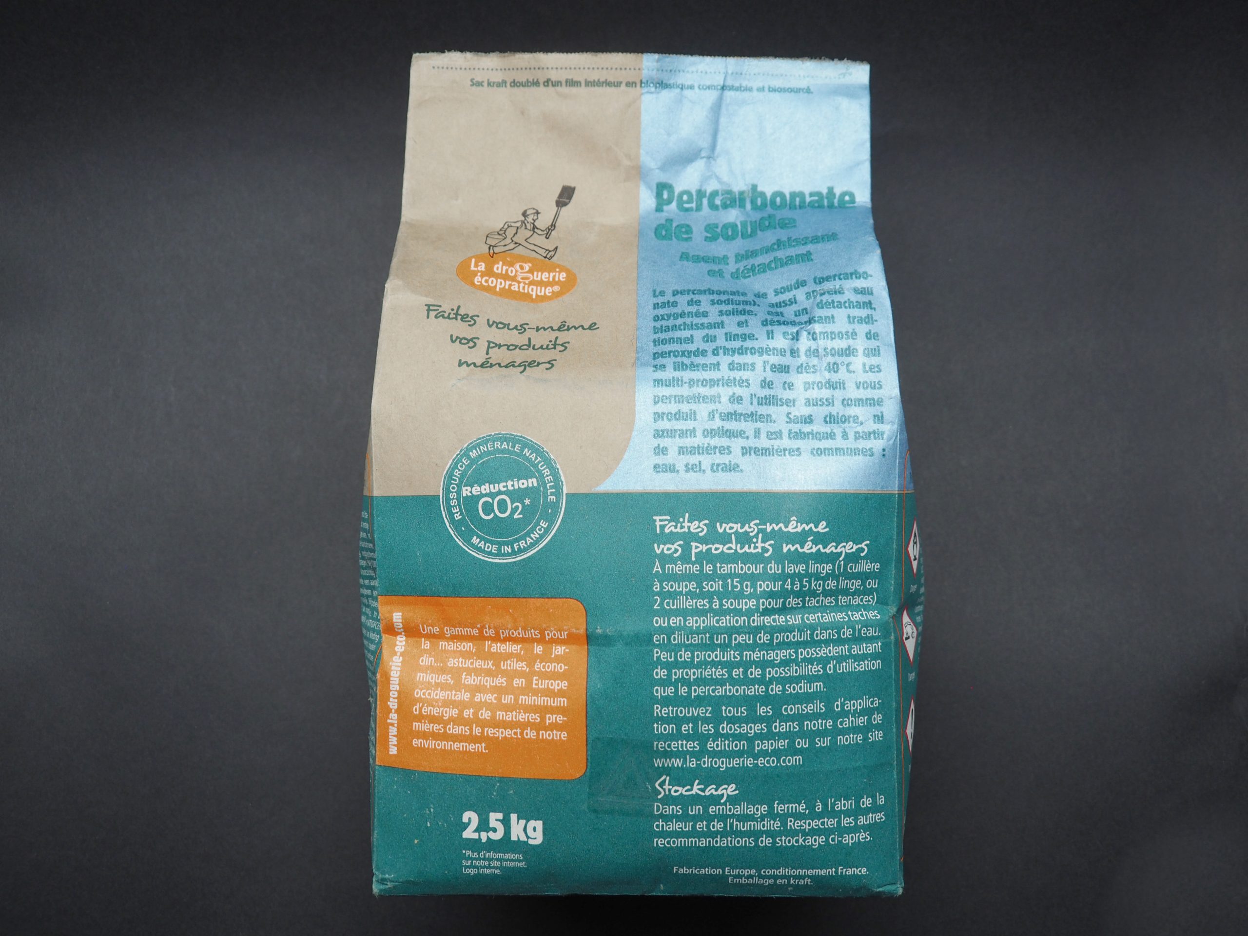 Appelé aussi eau oxygénée solide, le percarbonate est un détachant, blanchissant et désodorisant du linge. Il s’utilise aussi comme d’égrisant pour le bois des bardages, meubles et terrasses extérieures.