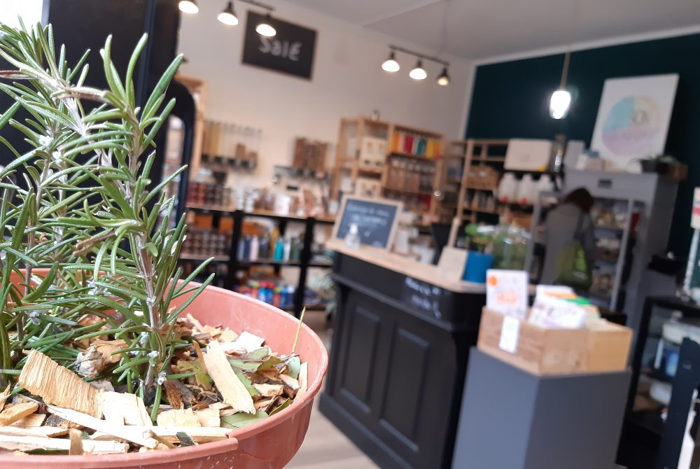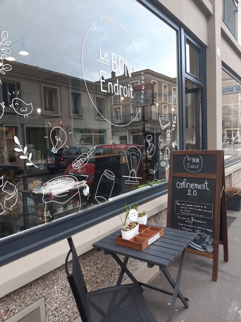 La grainothèque est à l’extérieur sur la petite table devant la vitrine si la météo le permet, sinon vous la trouverez dans l’espace droguerie.